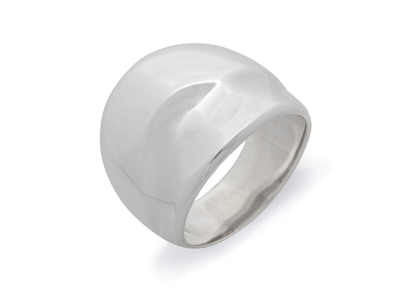 This unique sterling silver ring is highlighted with an artistically beautiful domed wave design. The lustre of sterling silver certainly showcases its value. The rounded band also allows the ring to visually stand out. The varied 20mm tapering bandwidth further helps draw attention the classic design.