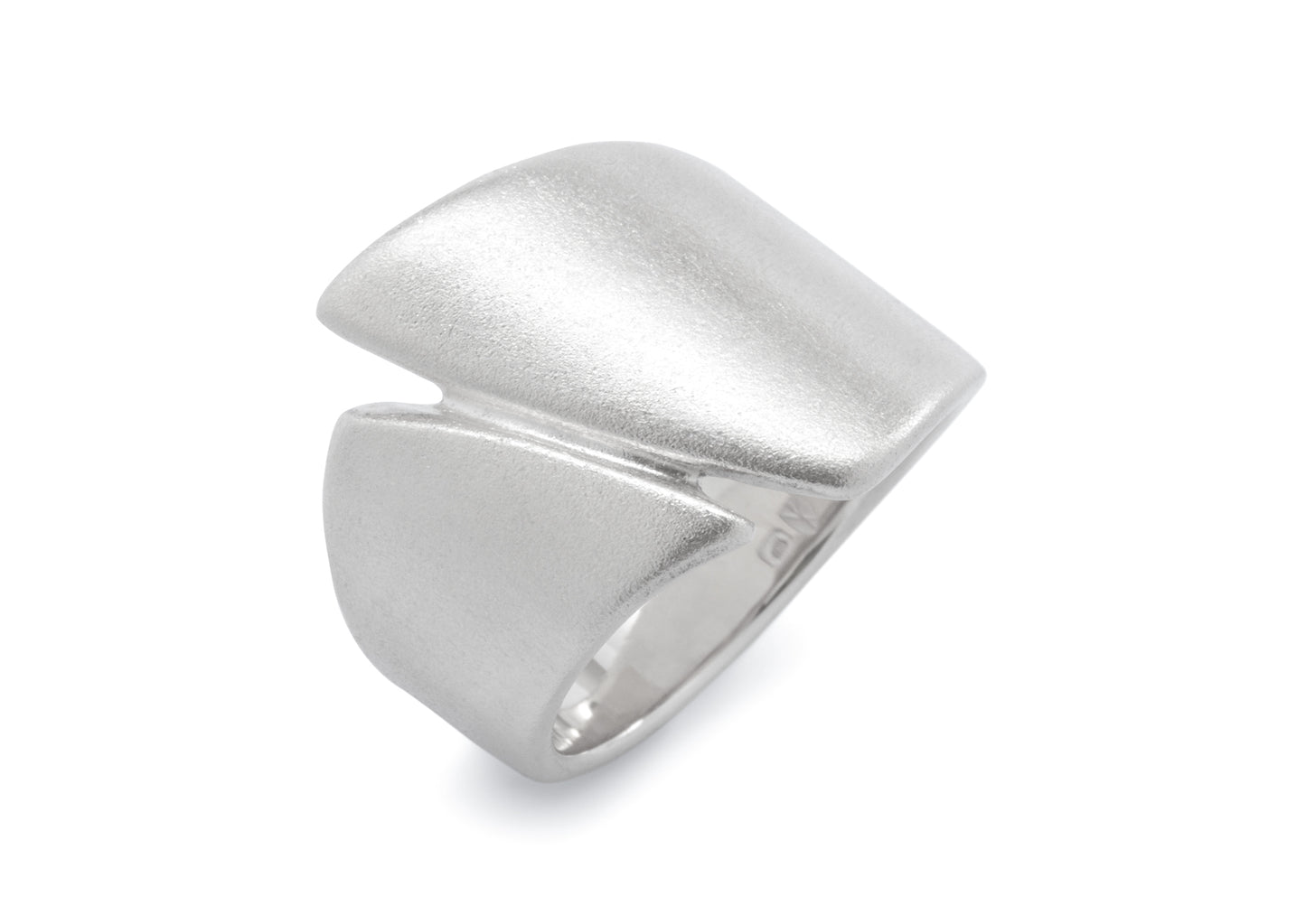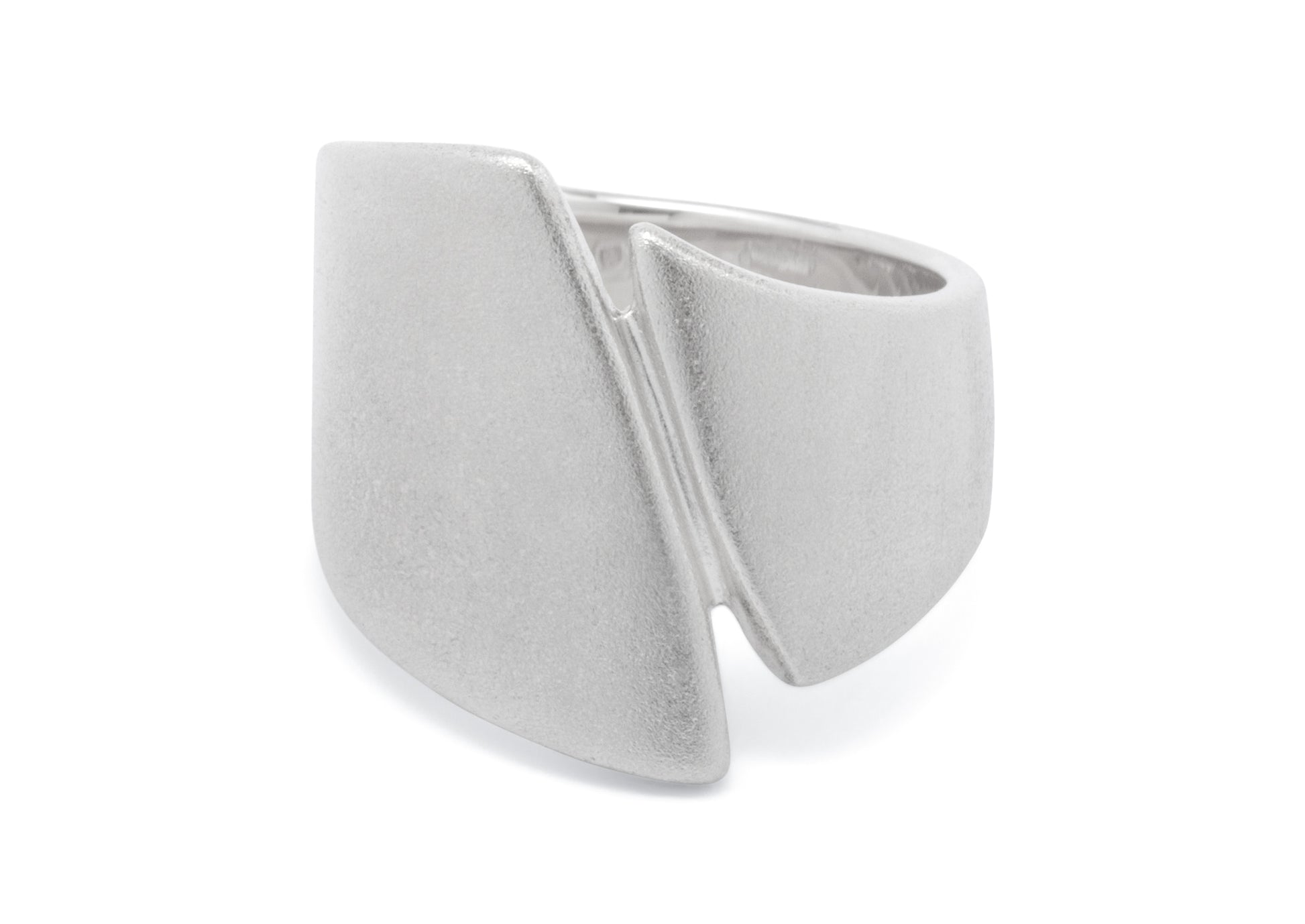 Sterling Silver Classic Contemporary Polished Flat Ring Design with asymmetric split.