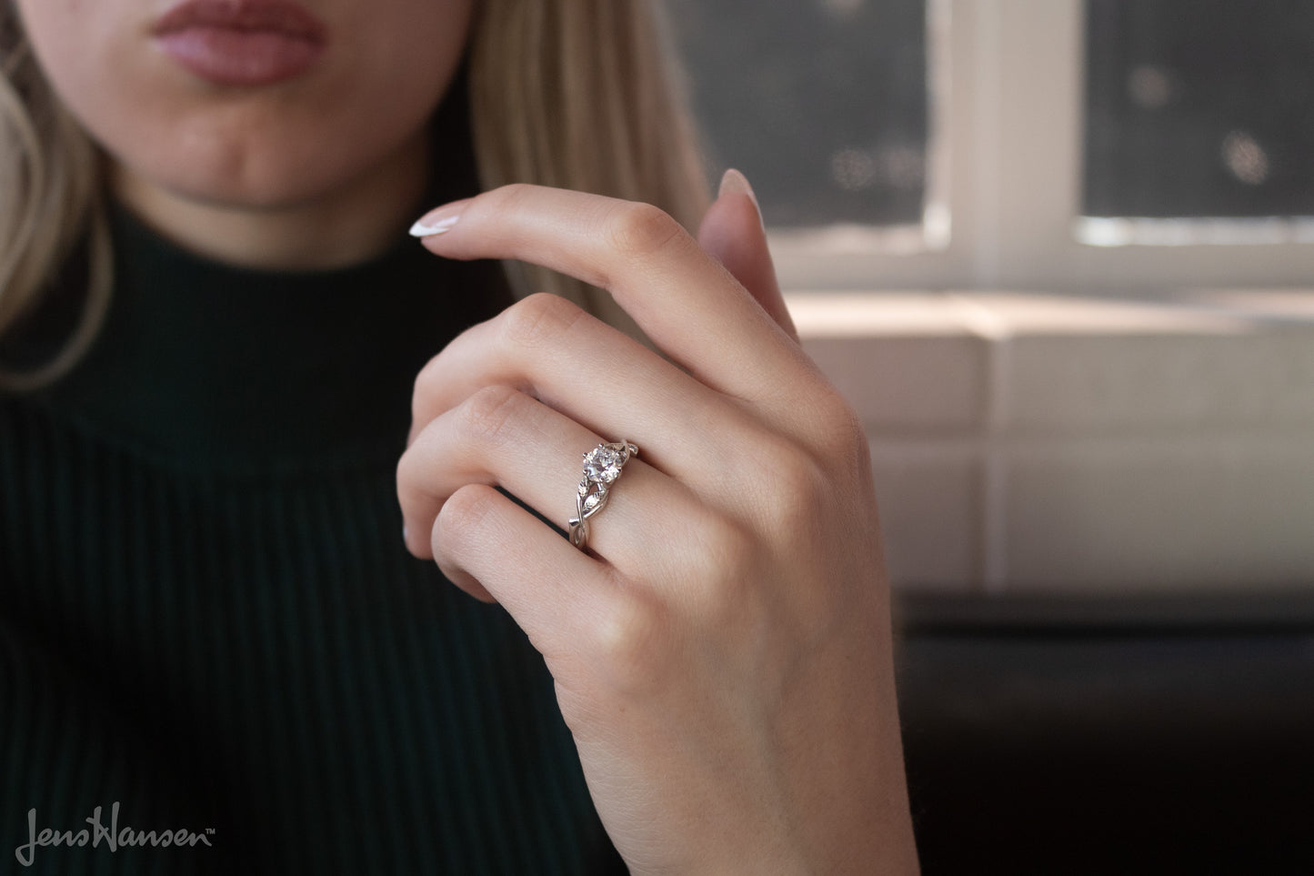 Solitaire Vine Engagement Ring, White Gold & Platinum
