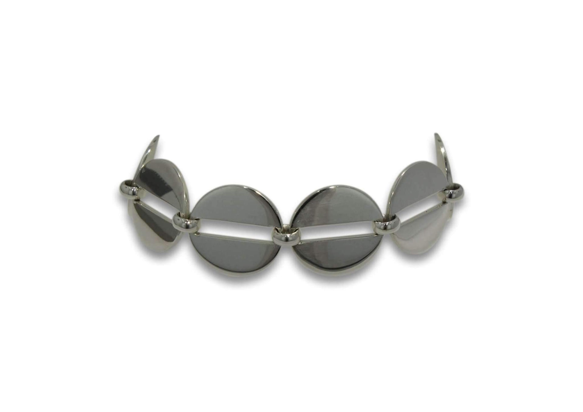 Sterling Silver Bracelet made up of 9 disc links 21x 1.5mm with slots 18x3mm joined with half round links 7x3mm.