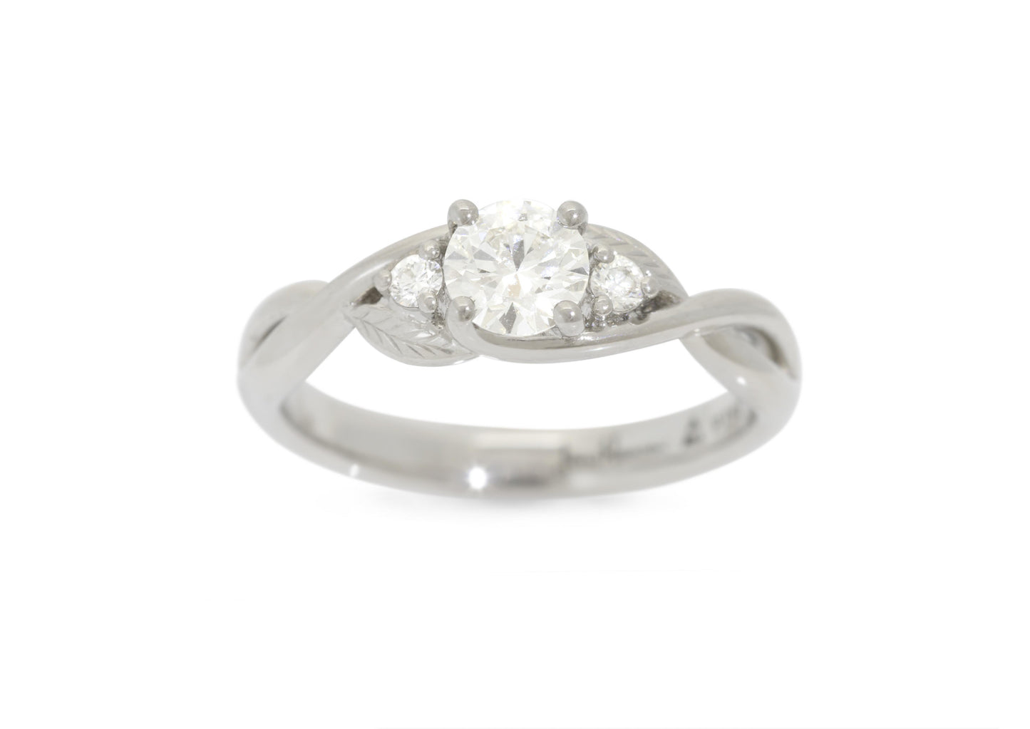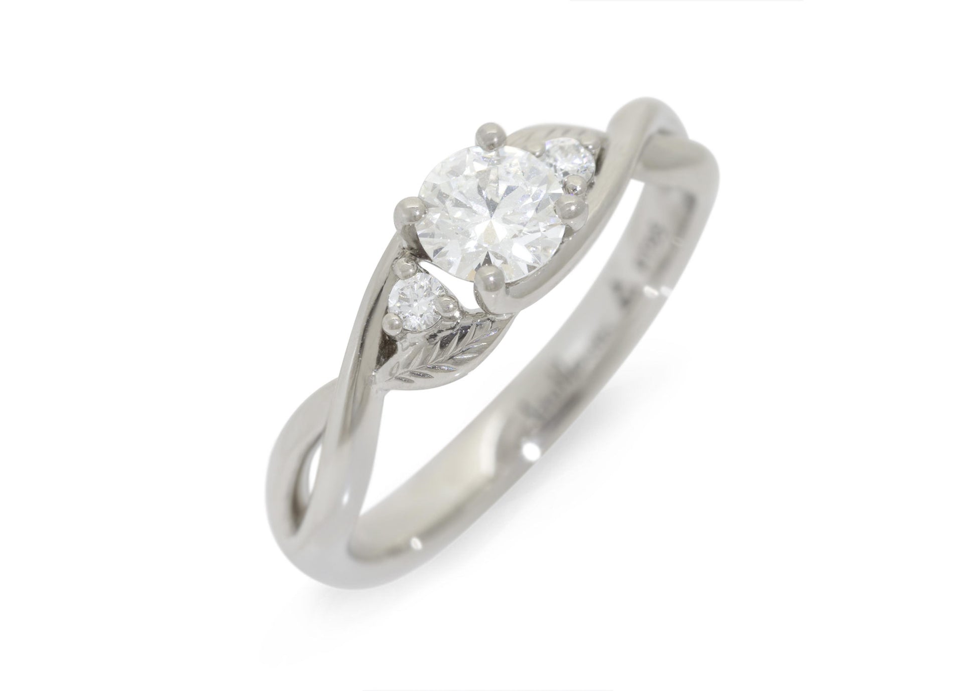 Spoil your beloved with a stunning Elven inspired engagement ring. This vine ring features three round brilliant diamonds.