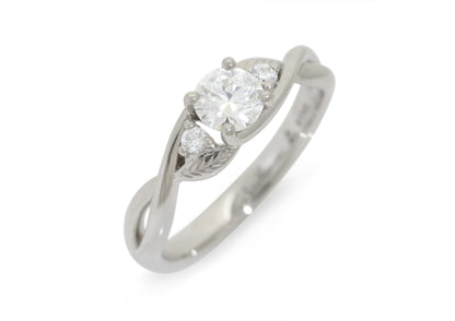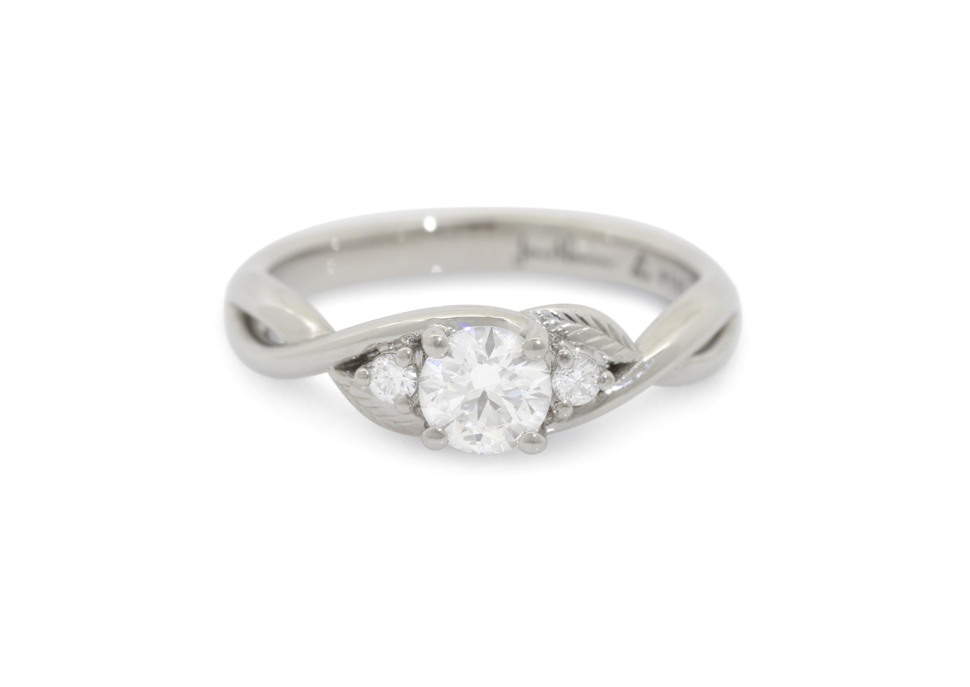 Three-Stone Round Diamond Elvish Vine Engagement Ring, White Gold & Platinum