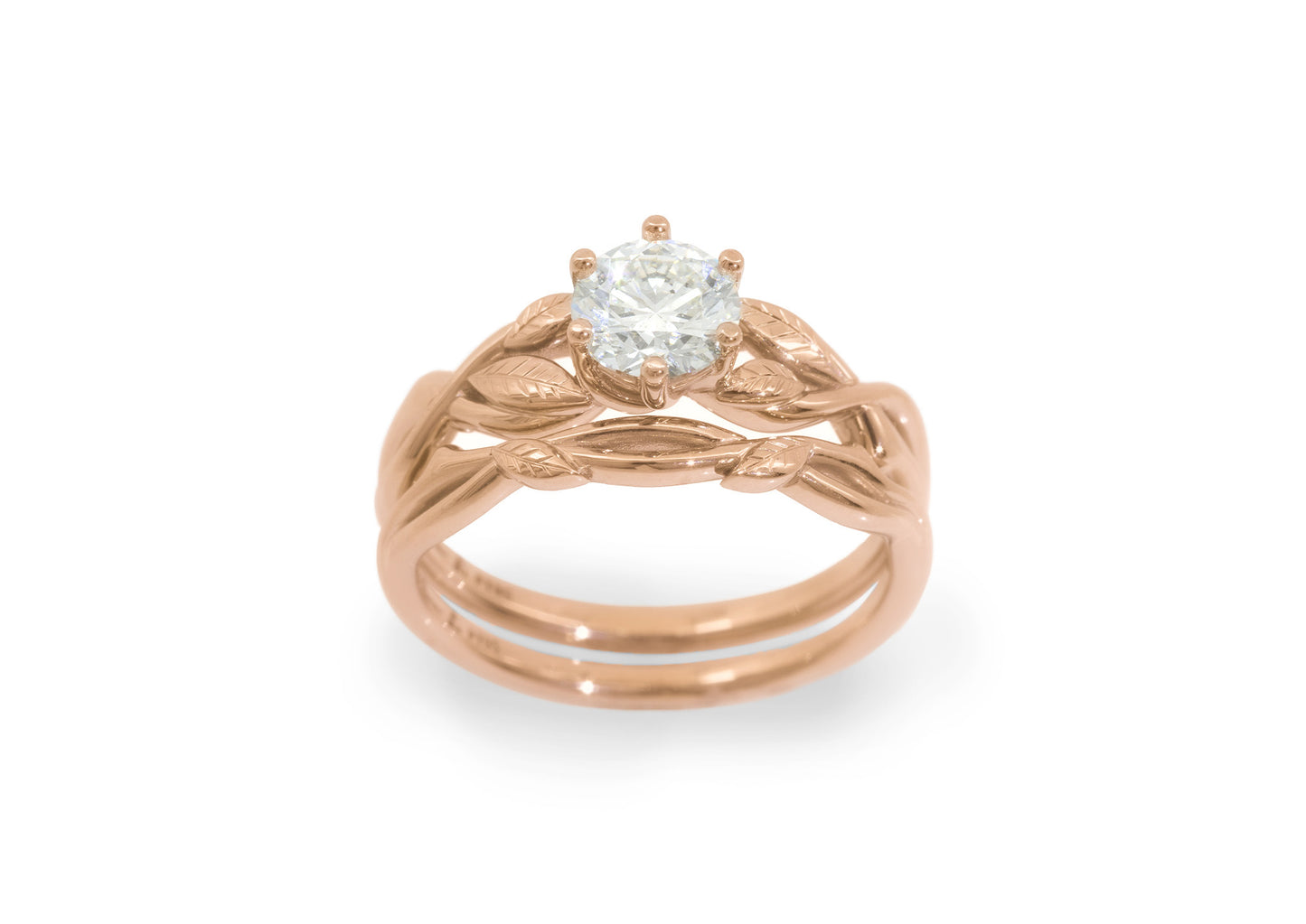 A symbol of enduring commitment, this heirloom-quality band complements the Solitaire Diamond Vine Ring with its handcrafted vine and leaf details. Mirroring the beauty of nature, it embodies timeless elegance.