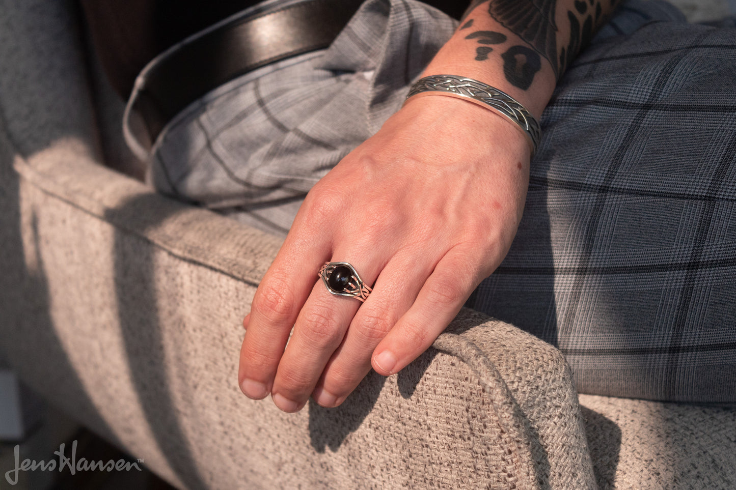 Elvish Woodland Gemstone Signet Style Ring, Sterling Silver