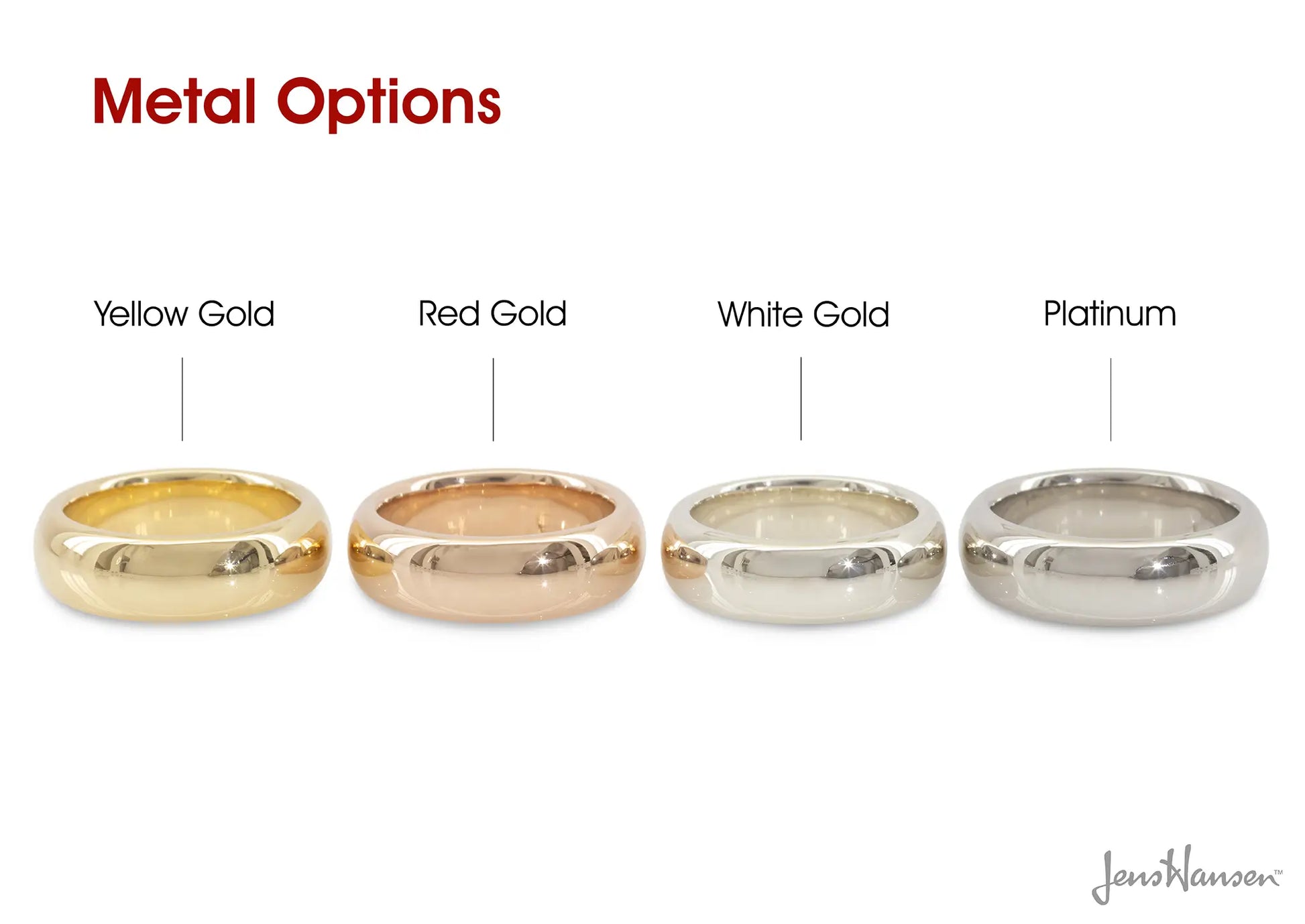 Choose the 14ct yellow for a mid-price option that is exceptionally hardwearing (14 carat is minimum content pure gold to be considered real gold in many countries - Straw yellow color)